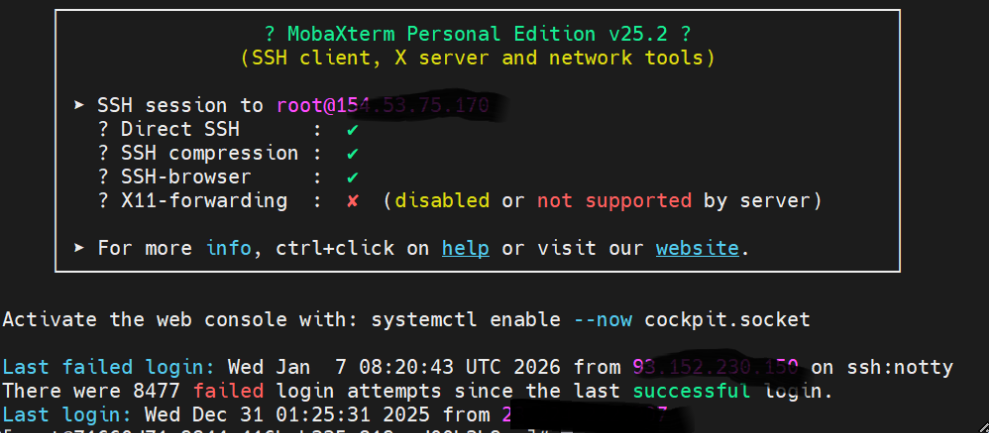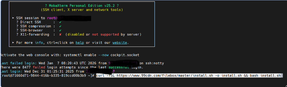 博主用的是MobaXterm,从你购买服务器商那里查看你的IP和密码连接登录服务器。如下图: