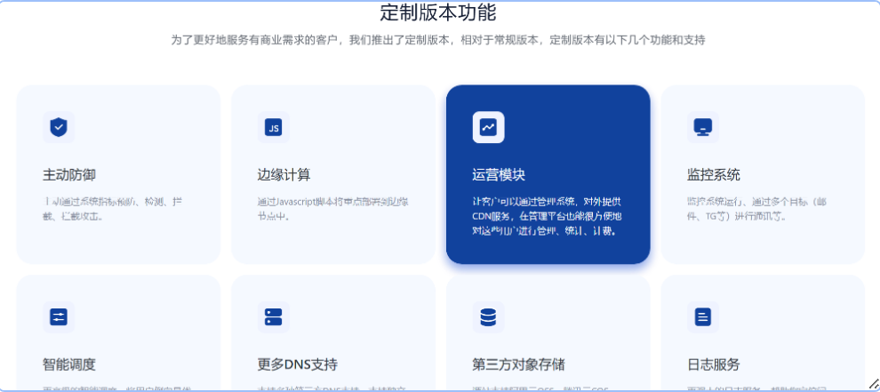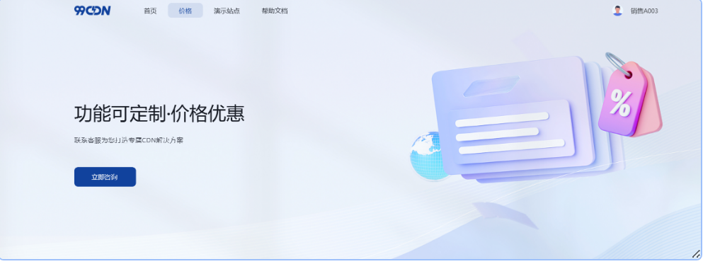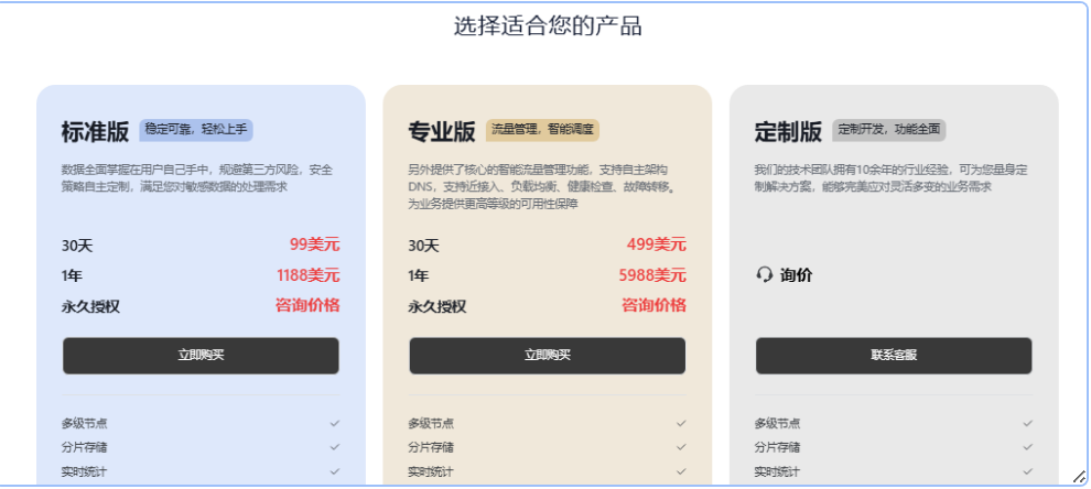 目前99CDN的套餐有三种:标准版、专业版、定制版。可以更具自己的需求选择相应的套餐。