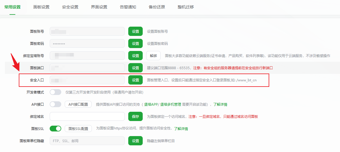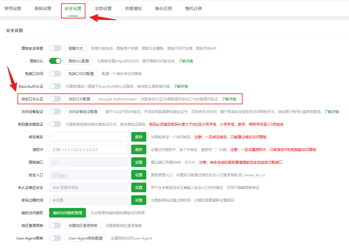 三、开启面板安全入口(不要关闭)